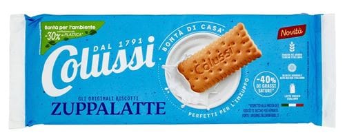 Colussi Zuppalatte este biscuitul original Colussi, cu un gust delicat si atemporal, produs inca de la inceputul anilor 1900. Are cinci straturi de aluat intins, suprapuse pentru o foietare inconfundabila. Biscuitul este gros si sfaramicios, ideal pentru a fi inmuiat.